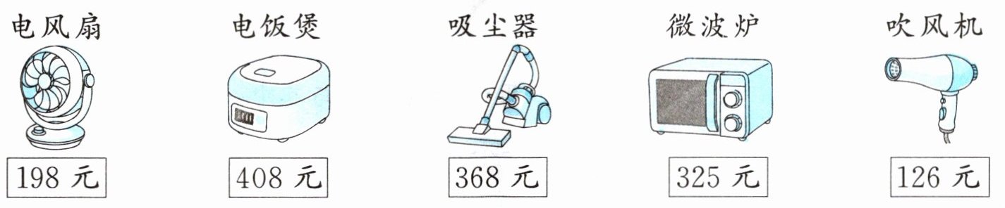 (1) 东东妈妈要买一台电风扇和一台吸尘器,她准备 600 元够吗?