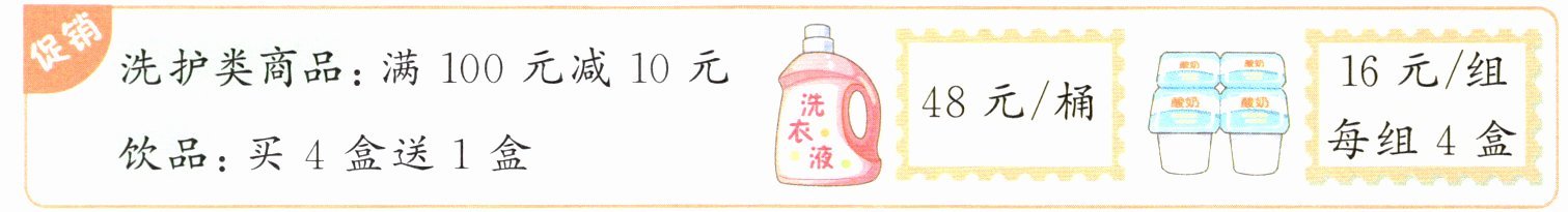 解析 第一步 理解饮品促销活动,“买4盒送1盒”,即付4盒的钱可以得到4+1=5(盒)酸奶。