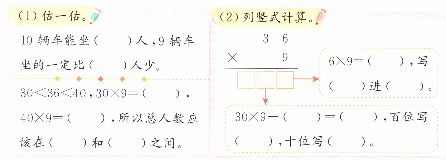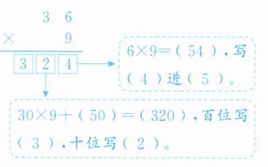 解析 根据多位数乘一位数的笔算方法笔算,笔算时注意:一位数和多位数的哪一位相乘,积就和那一位对齐,哪一位乘得的积满几十,就向前一位进几。