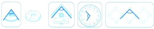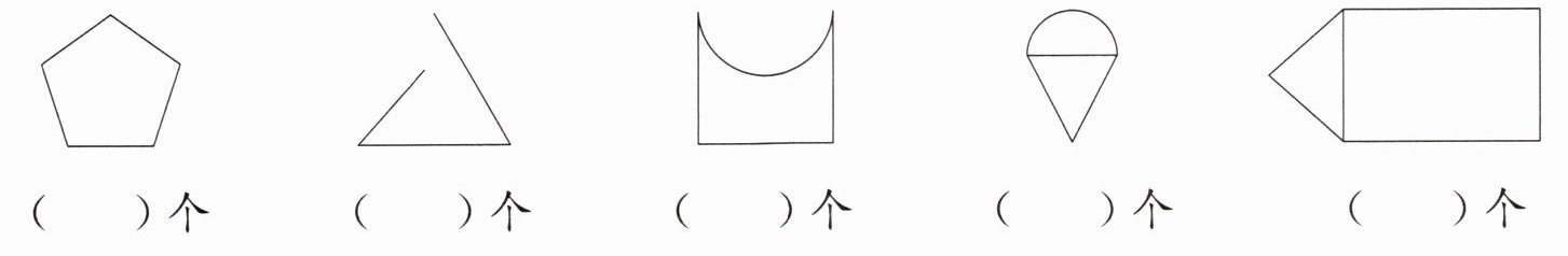 (后面三个物体描出的角不唯一) 解析 从一个点引出两条射线得到的图形是角。除了甜甜圈外,其他物体的表面都有角。描角时注意边要直且两边交于一点,并给角标上符号。