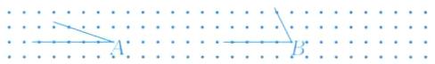 4 以点 A 为顶点,画一个开口向左的角。以点 B 为顶点,画一个比角 A 大的角。