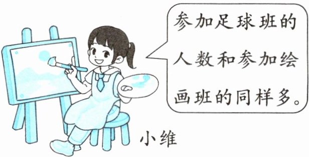 3 三(2)班有 4 人参加舞蹈班,5 人参加音乐班,参加足球班的人数是参加舞蹈班的 4 倍,参加绘画班的人数是参加音乐班的 4 倍。小维说得对吗?