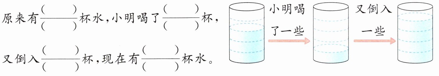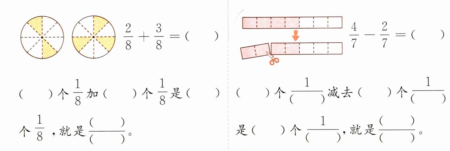 4. 一个西瓜,聪聪吃了它的$$ \frac{2}{8} $$,爸爸吃了它的$$ \frac{4}{8} $$,妈妈比爸爸少吃了西瓜的$$ \frac{3}{8} $$。