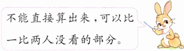 答:兰兰看得多。 解析 第一步 分别计算明明和兰兰没看的部分。 第二步 比较没看部分的大小。两人看同样的一本书,没看的部分越少,看了的部分越多,所以兰兰看得多。