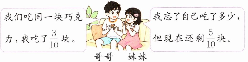 答:妹妹吃了$\frac{2}{10}$块巧克力。