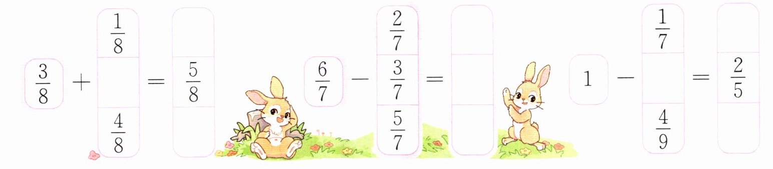 $\frac{4}{8}$ $\frac{2}{8}$ $\frac{7}{8}$ $\frac{4}{7}$ $\frac{3}{7}$ $\frac{1}{7}$ $\frac{6}{7}$ $\frac{3}{5}$ $\frac{5}{9}$