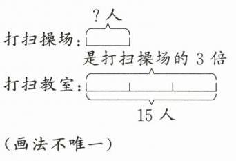 1 红星小学进行大扫除。三(1)班打扫教室的有15人,正好是打扫操场的3倍。三(1)班打扫操场的有多少人?