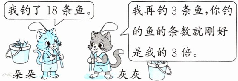 所以灰灰再钓3条鱼就是18÷3=6(条)鱼,它钓了6−3=3(条)鱼。