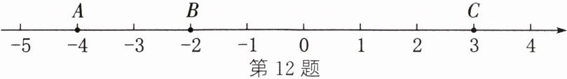 12. (数形结合思想)如图,数轴上有A,B,C三个点。请回答下列问题: