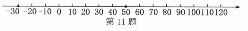 11. (新情境·日常生活)在一次主题班会上,班主任把全班学生分成了4个小组进行知识抢答活动。规定:答对1道题得10分,答错1道题扣10分(即得$-10$分),不答得0分。活动结束后,4个小组的得分情况为第一组120分,第二组$-30$分,第三组0分,第四组50分。
