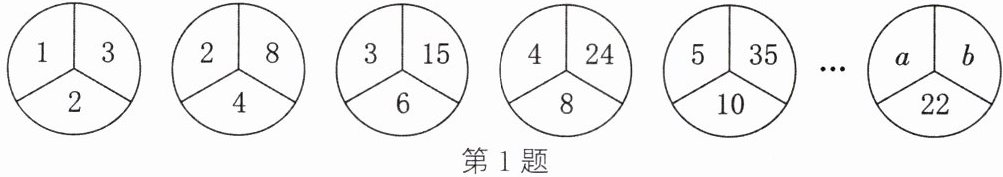 1. 如图,每个圆中三个扇形上标记的数之间都有相同的规律,根据此规律,可以得出图中 $ b $ 的值为