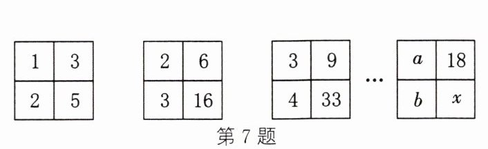 7. 如图,各正方形中的四个数之间都有相同的规律,根据此规律,$x$ 的值为(