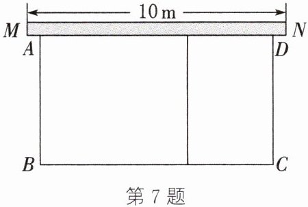 7. 如图,$MN$是一面长10m的墙,用长24m的篱笆围成一个一面是墙、中间隔着一道篱笆的矩形花圃$ABCD$,已知花圃的面积为$45m^{2}$,则花圃的宽$AB$是多少?
