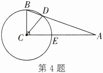 4. 如图,在Rt△ABC中,以点C为圆心,BC为半径的圆交AB于点D,交AC于点E.若∠BCD=40°,则∠A=