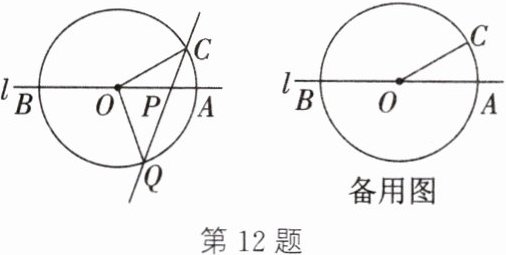 12. 如图,直线l经过⊙O的圆心,且与⊙O交于A、B两点,点C在⊙O上,且∠AOC=30°,P是直线l上的一个动点(不与圆心O重合),直线CP与⊙O相交于另一点Q,连接QO.