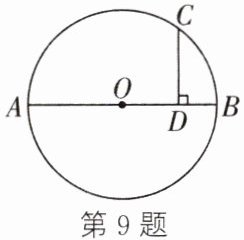 9. 如图,AB是⊙O的直径,点C在⊙O上,CD⊥AB,垂足为D.若CD=4,BD=2,则AB=