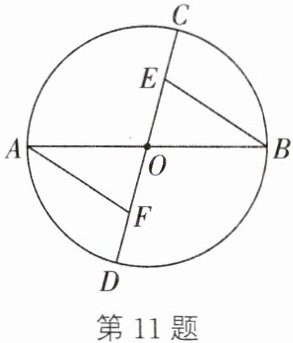 11. 如图,AB、CD为⊙O的两条直径,点E、F在CD上,且CE=DF.求证:AF=BE.