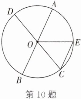 10. 如图,AB和CD为⊙O的两条直径,CE//AB交⊙O于点E,∠COE=50°.求∠BOD的度数.