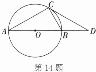 14. (2024·新沂模拟)如图,在⊙O 中,AB 是直径,C 是圆上一点,在 AB 的延长线上取一点 D,连接 CD,使∠BCD = ∠A.