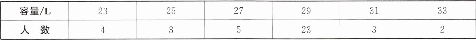 4. (2024·北京一模)某班级计划利用暑假去研学旅行,他们准备定做一批容量相同的双肩包.活动负责人征求了全班40名同学的意向,得到如下数据: