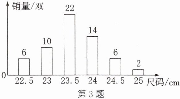 3. (2023·南充)某女鞋专卖店在一周内销售了某种女鞋60双,对这批女鞋的尺码及销量进行统计,得到条形统计图(如图).根据图中信息,建议下次进货量最多的女鞋尺码是(