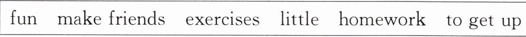 1. homework 2. to get up 3. fun 4. make friends 5. exercises