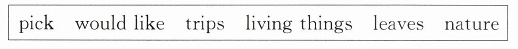 1. trips 2. living things 3. leaves 4. nature 5. pick