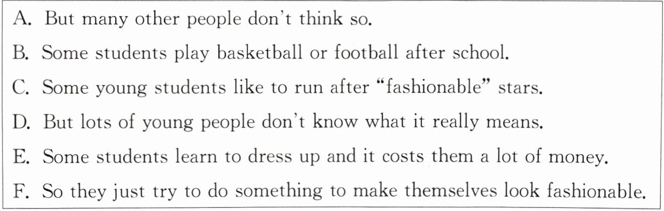 They just think a new mobile phone, a new hairstyle or a new kind of clothes is fashionable. 2. F