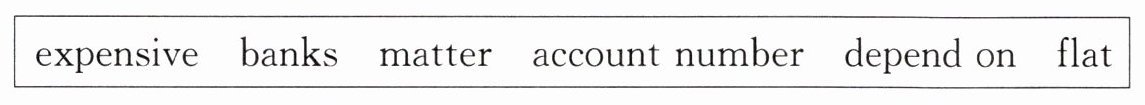 1. flat 2. expensive 3. banks 4. account number 5. matter
