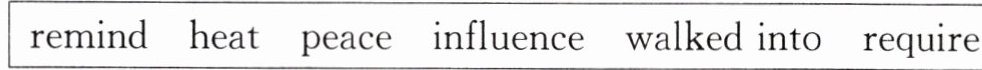1. influence 2. remind 3. walked into 4. peace 5. heat
