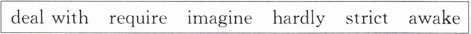 1. hardly 2. strict 3. awake 4. imagine 5. deal with