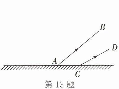 13. 如图所示,$ AB $、$ CD $ 是发光点 $ S $ 发出经平面镜反射的两条光线,在图中用平面镜成像的原理画出发光点 $ S $ 和它在平面镜中的像 $ S' $,并补全光路。