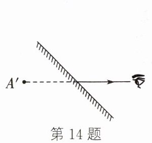14. 如图是人眼看见 $ A $ 物体在平面镜中的像 $ A' $ 的示意图,请确定物体 $ A $ 的位置并画出入射光线。