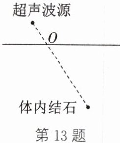 13. (新情境·科技民生)现代医学中常用超声波击碎人体内的结石,超声波从空气中斜射入人体后也类似光一样要发生折射,且在人体中传播速度比在空气中快。如图所示,超声波进入人体击碎结石时,入射点应在O点的