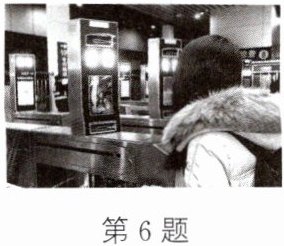 6. 人脸识别是一项新兴的生物识别技术。在车站,当旅客距安检口0.5~1.2m时,安装在安检口的人脸识别系统的摄像机就可以对其面部特征进行快速核对,如图所示。由此判断,人脸识别系统的摄像机的镜头(