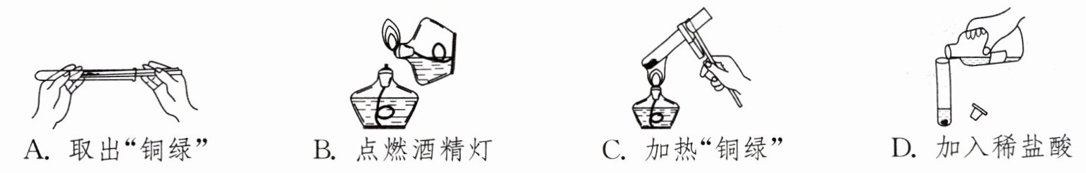9. (2024·邳州期中)铜器在潮湿的空气中久置,表面会生成一种绿色固体,称之为“铜绿”。兴趣小组为探究“铜绿”的性质进行的下列实验操作中,正确的是(