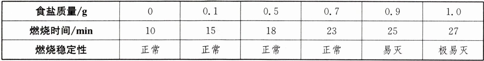 【实验探究】实验目的:探究不同质量的食盐对蜡烛燃烧时间的影响。