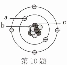 10. 某原子结构模型的示意图如图所示,其中a、b、c是构成该原子的三种不同的微观粒子,下列说法正确的是(