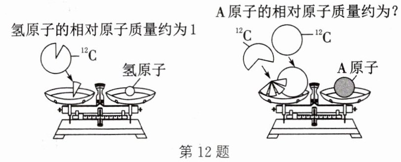 12. 认真分析如图所示的测定相对原子质量的示意图,推断A原子的相对原子质量约为(