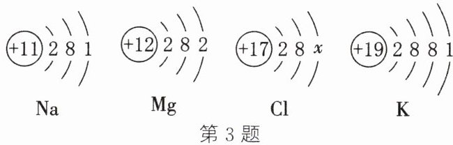 3. (2024·泰安改编)如图所示为钠、镁、氯、钾四种原子的结构示意图,回答下列问题。
