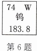 6. (2023·河北)荧光灯内的白色粉末涂层是一种叫钨酸钙($CaWO_4$)的化合物,如图所示为钨元素在元素周期表中的相关信息。下列分析正确的是 (