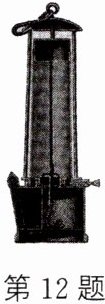 12. 19世纪初,电灯尚未发明,煤矿工人在矿井中只能借助煤油灯照明。矿井中通常存在大量的甲烷气体,遇火极易发生爆炸。1815年,化学家戴维设计出一种安全矿灯——戴维灯(如图),采用一种网眼很小的普通金属网罩住火焰,火焰只会在网中燃烧而不会引燃外界的甲烷气体。