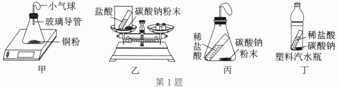 (3)① 任何化学变化都遵循质量守恒定律,乙实验的反应符合质量守恒定律。② 最合适的装置是丁,理由是装置密闭,用天平测量时不受浮力影响。