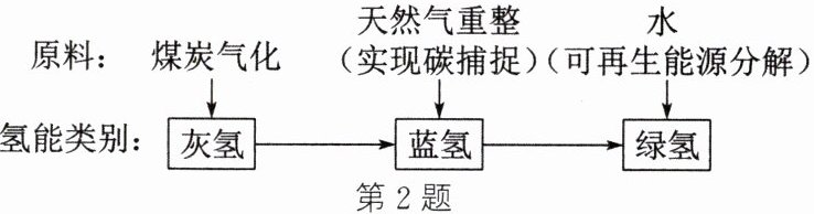 (填“灰氢”“蓝氢”或“绿氢”)。② 蓝氢的制得使用了碳捕捉技术,通常用纳米 CaO 吸附碳源,吸附原理与活性炭相似,是因为其具有