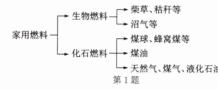 1. (2024·吕梁模拟)燃料的发展史是一个漫长的过程,家用燃料的变迁改善了人们的生活,提高了生活质量。如图为家用燃料分类图,下列分析正确的是(