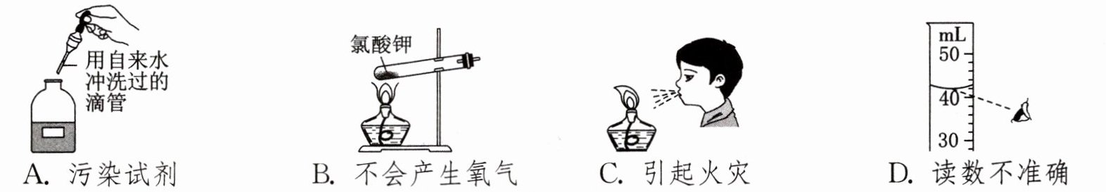 8. 下列图示的“错误”操作,与相应选项“可能产生的后果”不一致的是(提示:氯酸钾受热分解能产生氧气)(