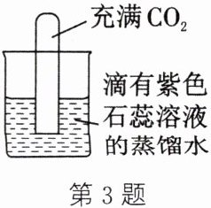 3. (2023·泰安宁阳校级段考)如图,将充满CO₂的试管倒扣在滴有紫色石蕊溶液的蒸馏水中,一段时间后,下列实验现象描述正确的是(