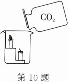 10. 小金通过实验室制取和收集二氧化碳的方法获得了一瓶二氧化碳气体。接着他利用这瓶二氧化碳气体完成了如图实验,观察到蜡烛火焰自下而上依次熄灭。下列说法错误的是(