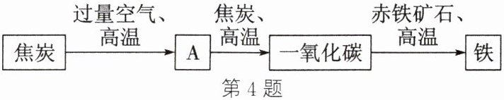 4. (2023·包头改编)内蒙古矿产资源丰富,某炼铁厂利用焦炭和赤铁矿石作为高炉炼铁的主要原料,其主要反应过程如图所示(部分反应物、生成物及反应条件已略去)。