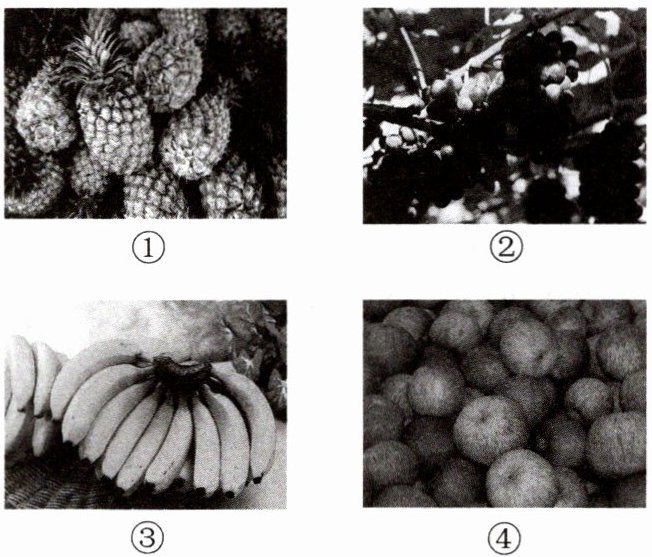 (2)到海南后,老人们来到海口的瓜果批发市场,见到了许多水果品种。下列哪些水果的主产地是海南?请填写它们的序号: